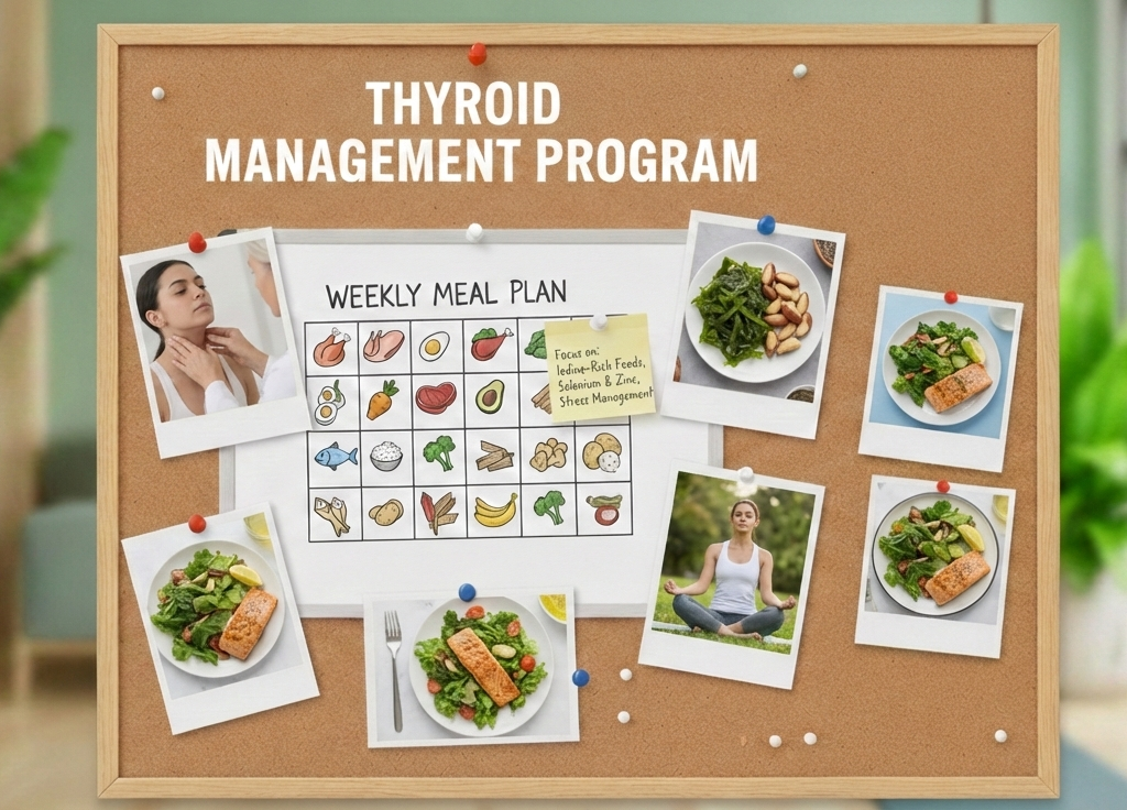 Thyroid disorders can affect metabolism, weight, mood, and overall well-being. Proper nutrition and lifestyle support play a crucial role in managing thyroid conditions alongside medical treatment. Our Thyroid Management Program focuses on balancing nutrition, improving metabolism, and supporting long-term thyroid health in a safe and sustainable way.